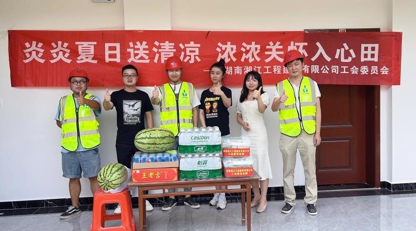 8月2日下午,湘江公司工會委員周思率工會工作人員前往長沙大托項目送去西瓜、藿香正氣水等降溫抗暑物資,在炎炎夏日為項目一線員工送去清涼和關懷。..